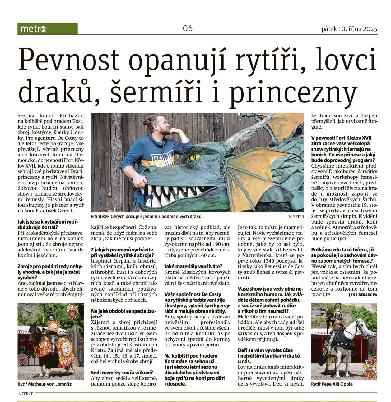 "Pevnost opanují rytíři, lovci draků, šermíři i princezny"